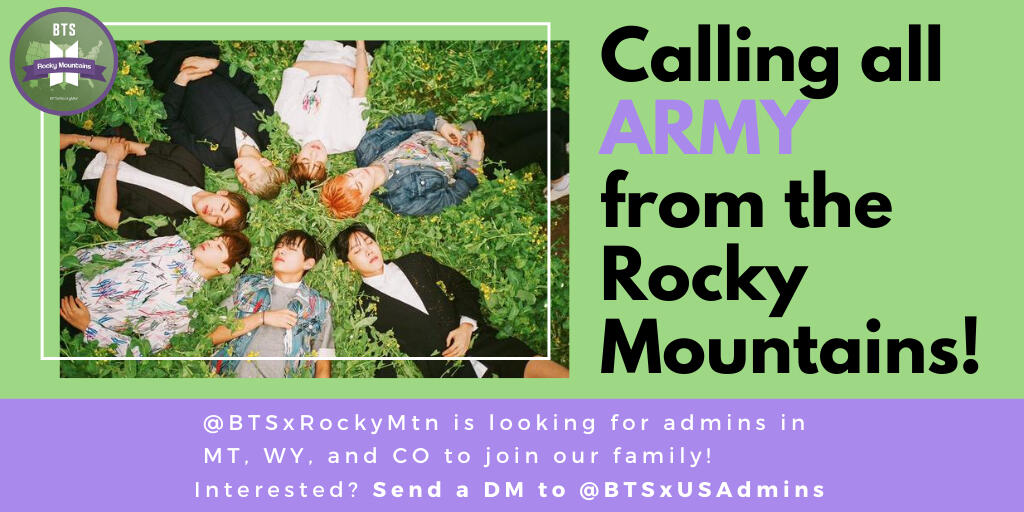 Representing BTS ARMY in Colorado, Montana, and Wyoming!A region of the BTSx50States fanbase comprised of local Rocky Mountain admins who are working to support BTS and ARMY